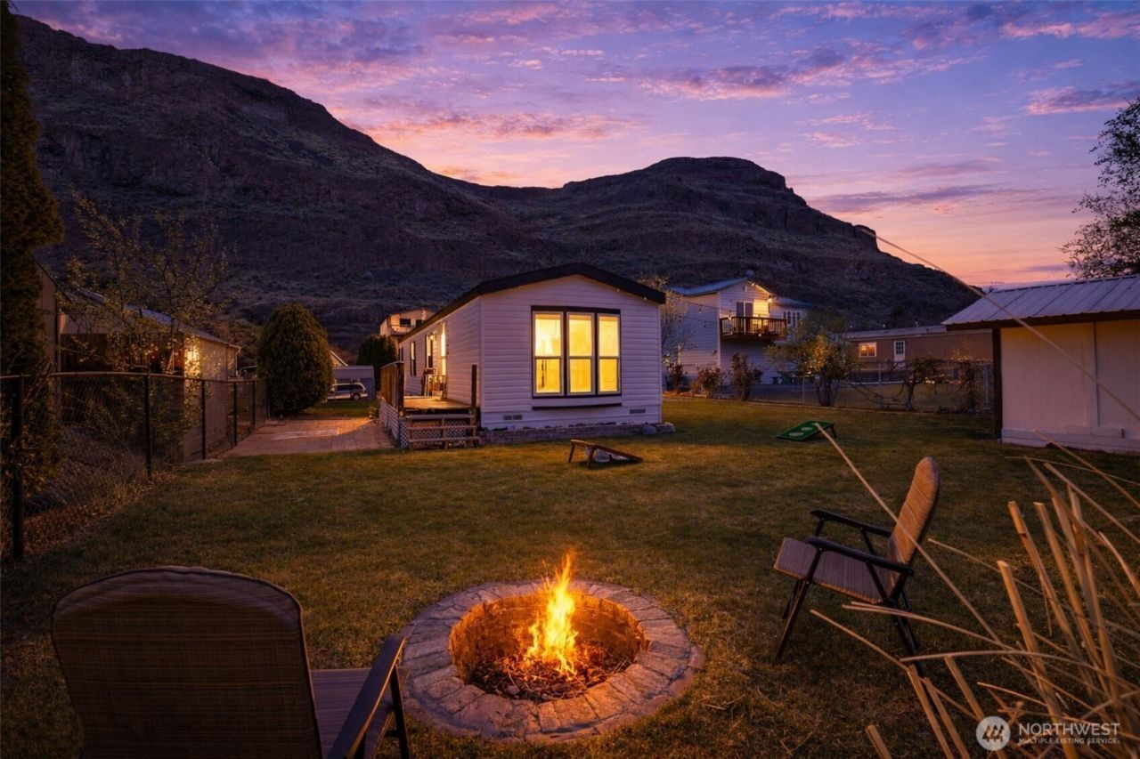 A hidden gem in Sunland Estates! This manufactured home is tucked amongst mature greenery, serving as a sunny oasis brimming with potential. An oversized driveway offers space to grow (RV hookups? Garage?) with fully-fenced yard. Inside an open floorplan makes hosting easy, with spacious kitchen & bay windows framing sunlit views. Vinyl planking extends throughout, with 2 beds + 1 full bath. Details include new A/C & furnace (2023), sprinkler system, security cameras, washer hook up, 10x10 shed, double swing gate to yard & quiet neighborhood location. Community amenities include pool, tennis & pickleball, park with river access, boat launch, & more. Just minutes to Cave B, Sagecliffe Resort, & the iconic Gorge Amphitheatre!